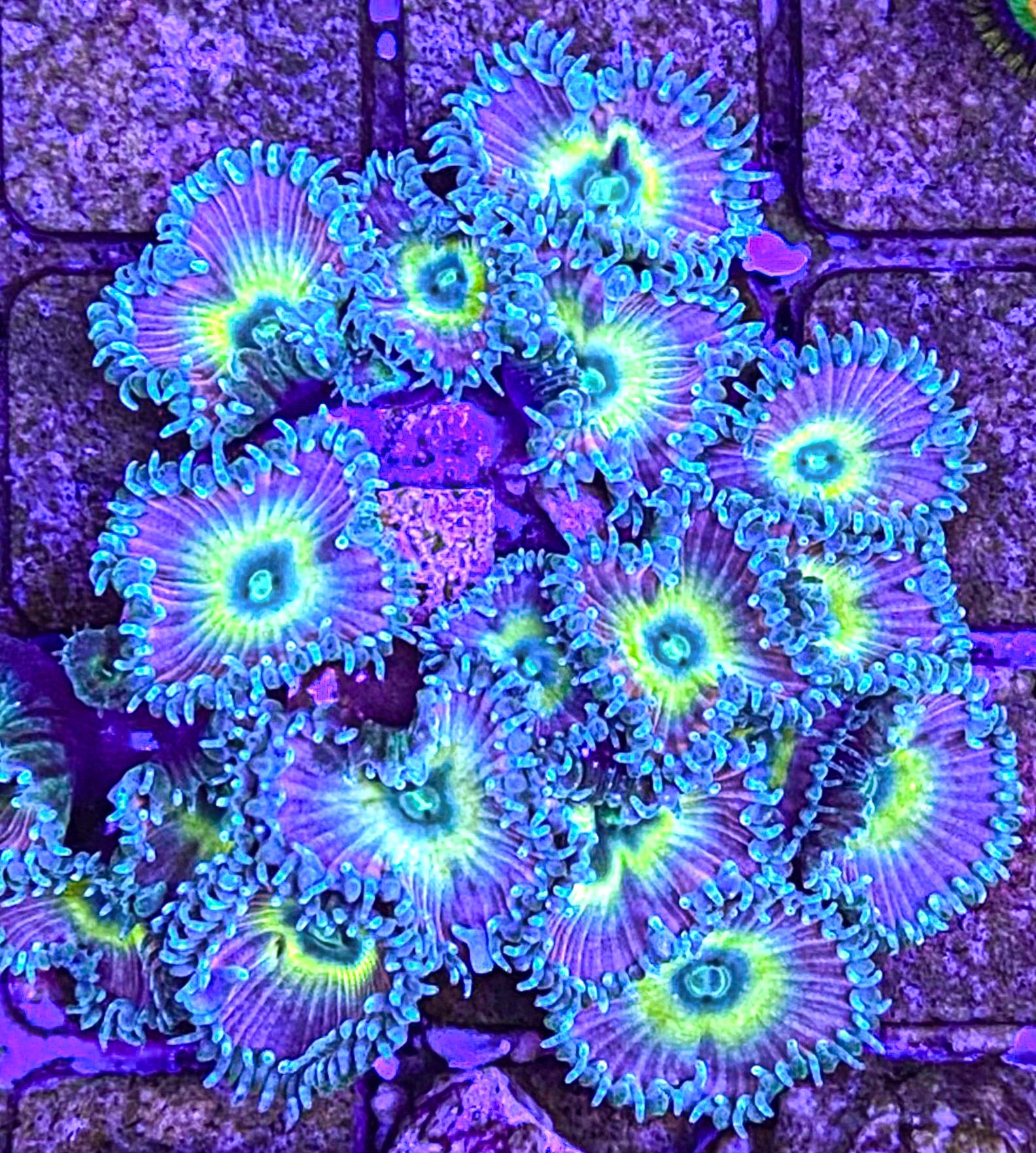 Discover a stunning and captivating addition to your aquarium with the Beauty and the Beast palythoa. This unique and beautiful species features a vibrant blend of blues, yellows, and purple, making it a feast for the eyes. With its easy care and hardy nature, it's the perfect choice for both beginner and experienced aquarium owners.